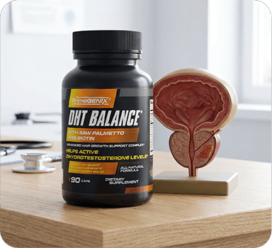 PrimeGENIX® DHT Balance uses a multi-pathway approach—supporting hormonal regulation, follicle strength, scalp health, and recovery—without compromising testosterone levels.