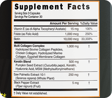 Black pepper extract (standardized for piperine) improves nutrient bioavailability, helping your body better utilize key ingredients such as biotin, collagen, pumpkin seed extract, and saw palmetto.